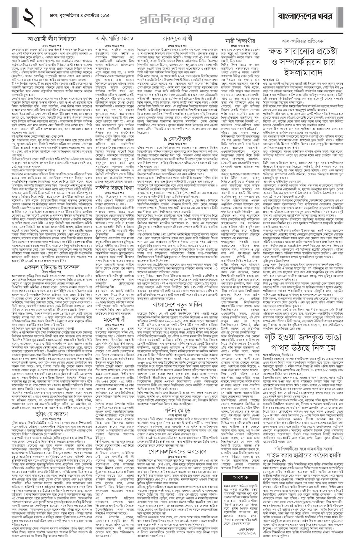 বৃহস্পতিবার, ০৪ সেপ্টেম্বর ২০২৫