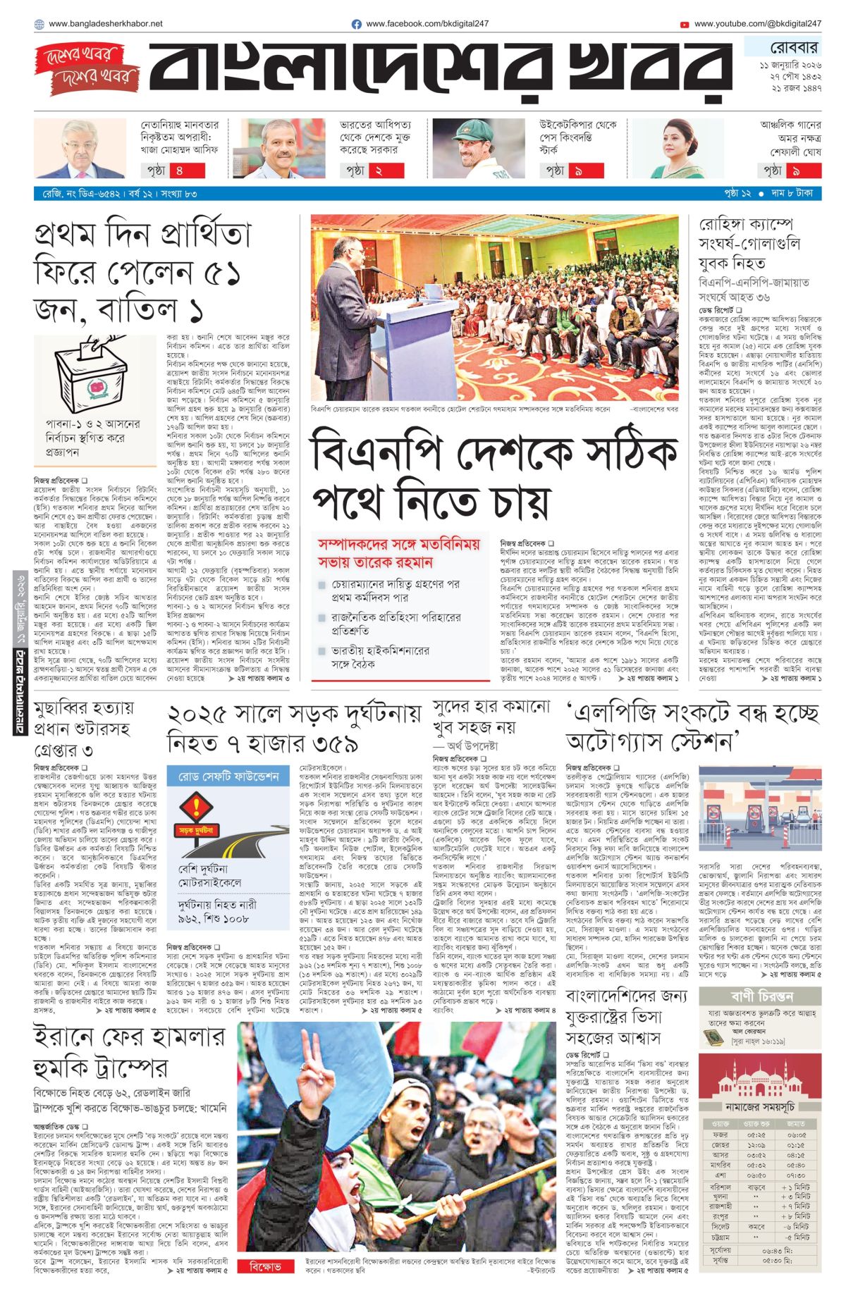 রোববার, ১১ জানুয়ারি ২০২৬
