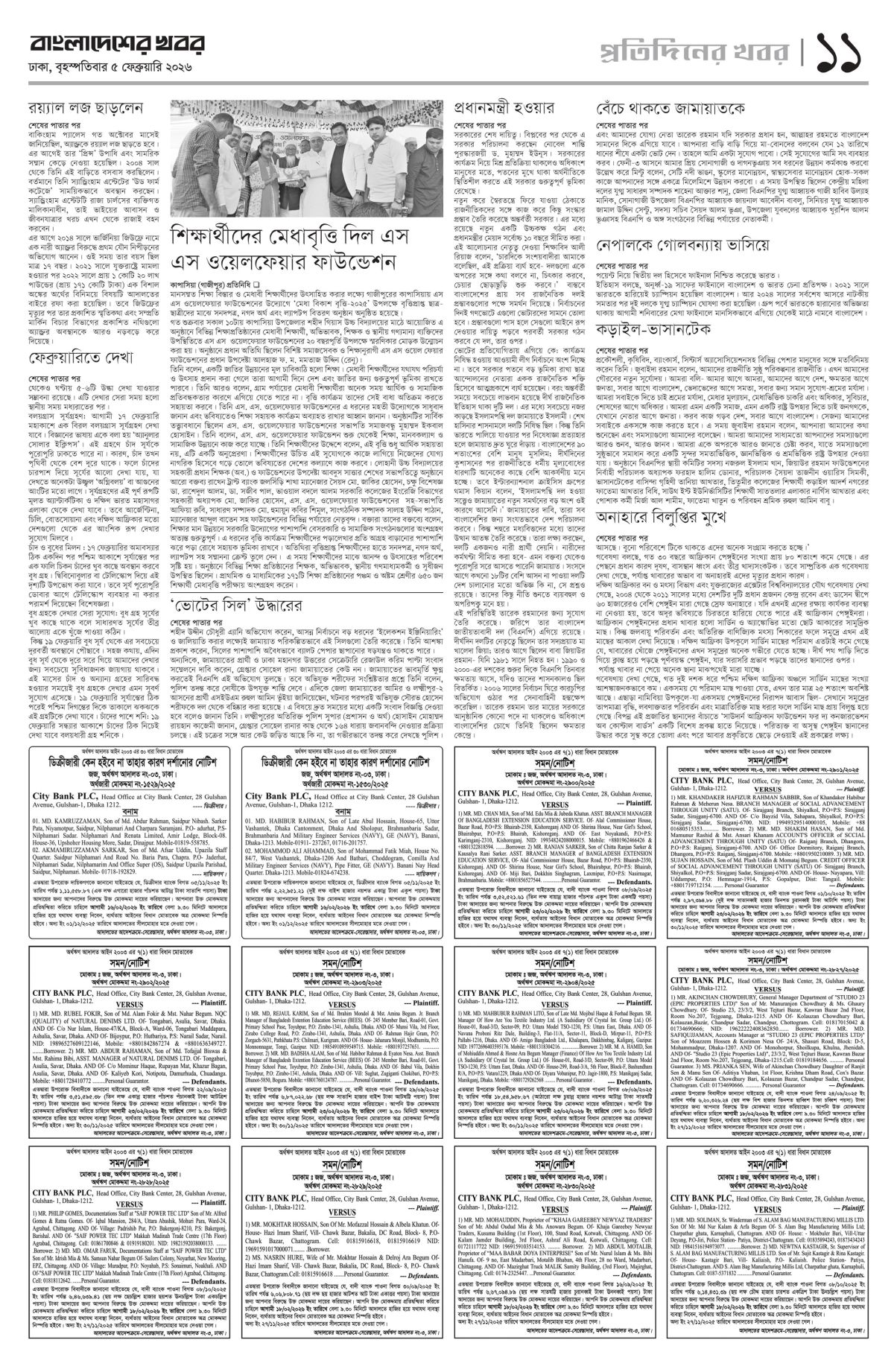 বৃহস্পতিবার, ০৫ ফেব্রুয়ারি ২০২৬