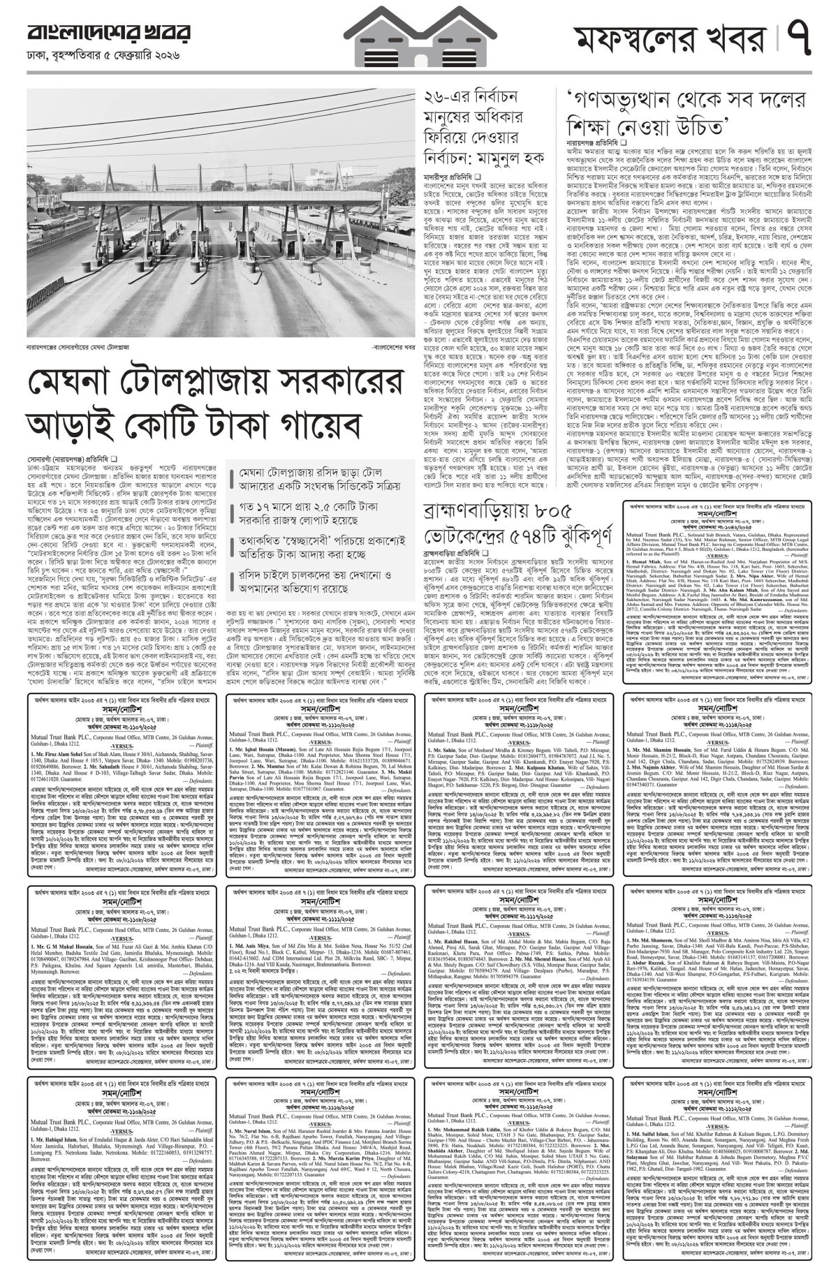 বৃহস্পতিবার, ০৫ ফেব্রুয়ারি ২০২৬