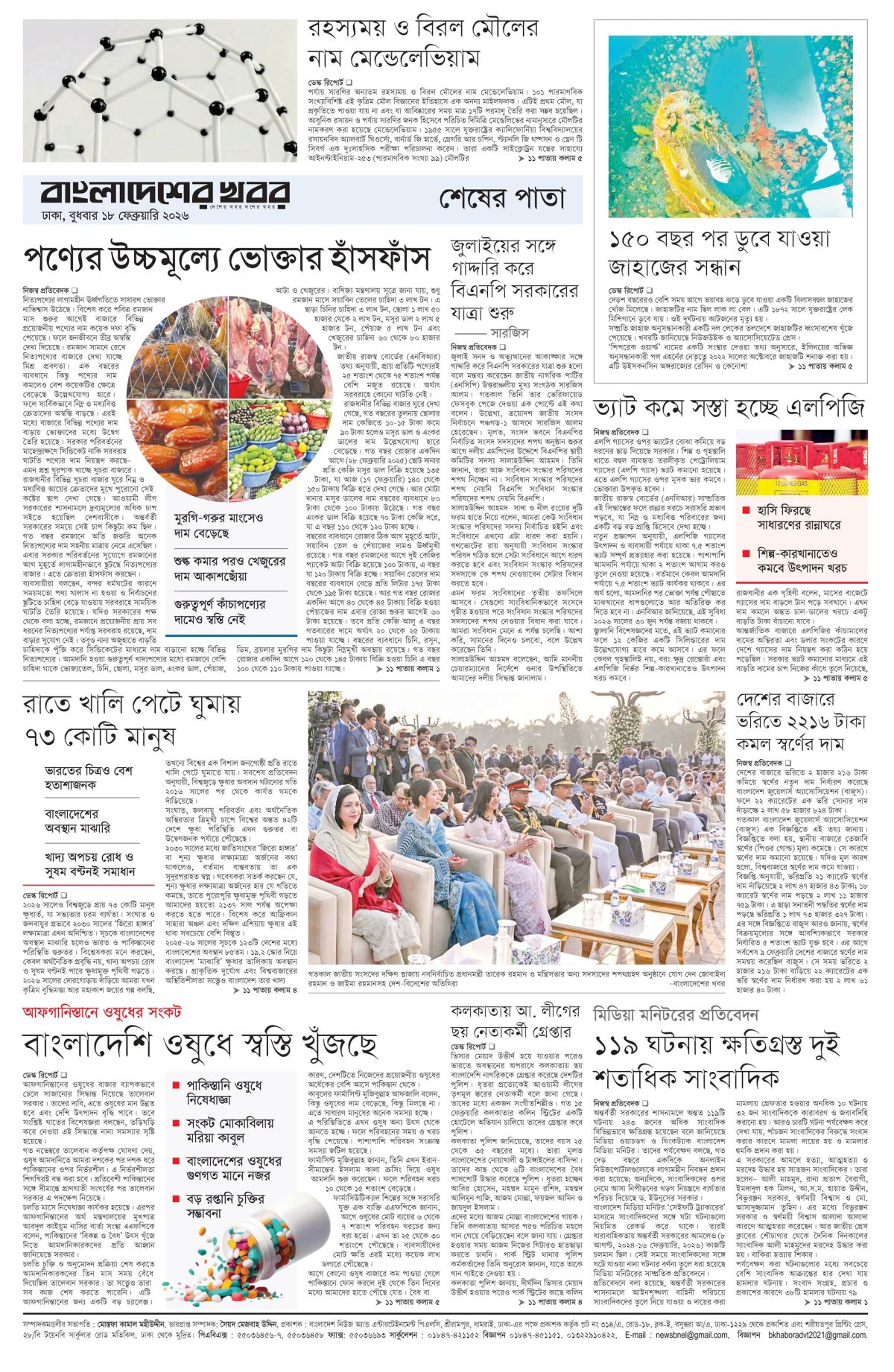 বুধবার, ১৮ ফেব্রুয়ারি ২০২৬