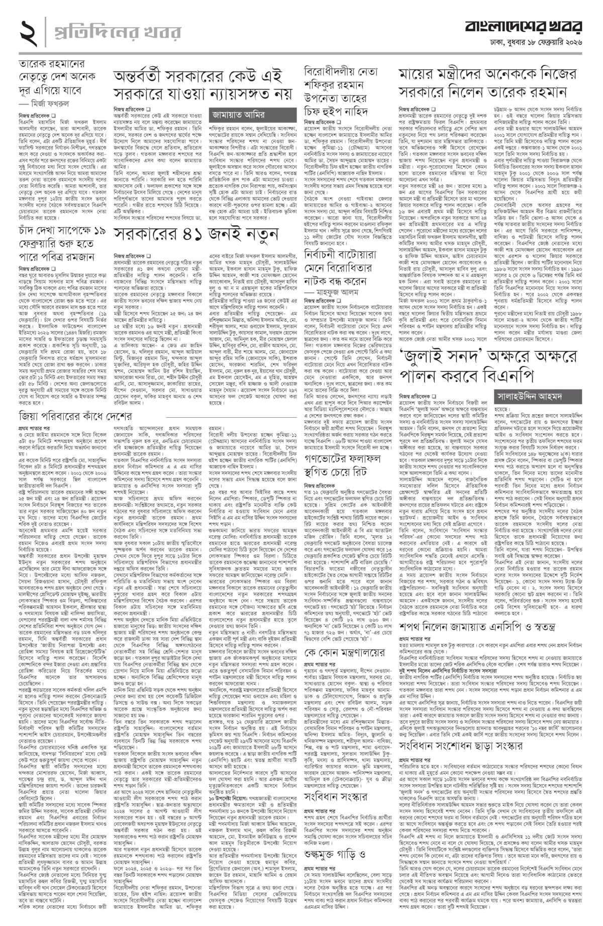 বুধবার, ১৮ ফেব্রুয়ারি ২০২৬